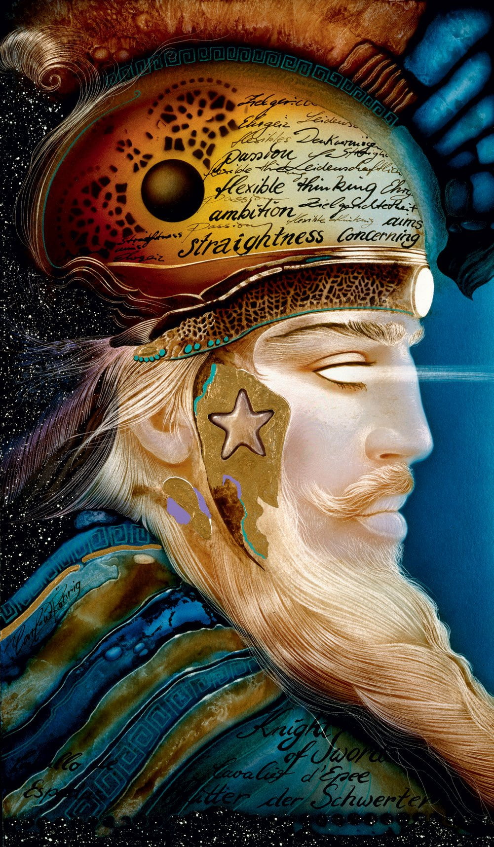 Carl-W. Röhrigs Tarot-Karten voller räumlicher Tiefe bestechen durch ihren extravaganten, surrealistischen Stil und ihr phantasievolles Spiel mit Zeichen und Formen.